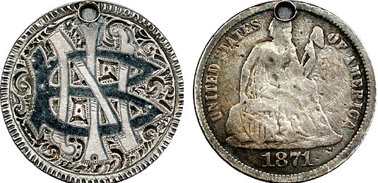 1871 10c US Seated Dime Love Token – NIB