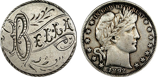Nicely engraved on a scroll on the moneyside is “Bella” surrounded by ornamental engravings and a light border. Wouldn't this be an enchanting gift for someone who is infatuated with the Twilight series of vampire novels and the movie featuring the lead actress whose name is Bella.