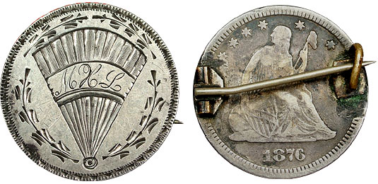 1876 25c US Seated Quarter Love Token Pin Fan Pictorial – MKL