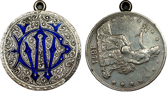 1874 $1 US Trade Dollar Love Token Enameled – WD