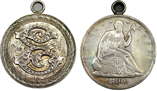 1860 50c US Seated Half Love Token Overlay – Intricate E