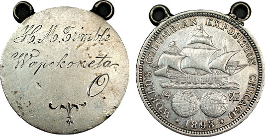 1893 50c US Columbian Commem Love Token – HM Trimble, Wapokoneta, O.
