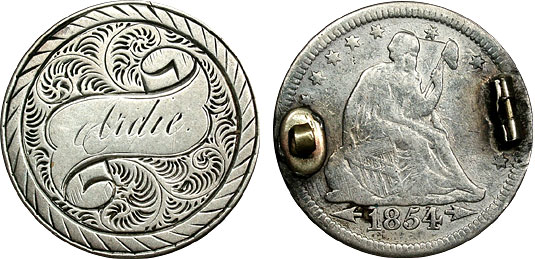 1854 25c US Seated Quarter Love Token Engraved Ardie