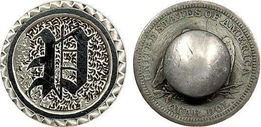 Date? 25c US Pair of Seated Quarter Cufflinks Enameled – D
