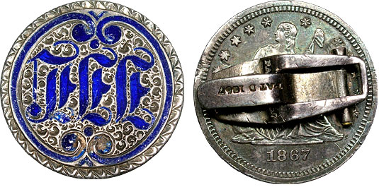 1867 25c US Pair of Seated Quarter Love Token Cufflinks Enameled – FEE