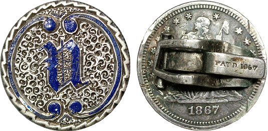 1867 25c US Pair of Seated Quarter Love Token Cufflinks Enameled – U