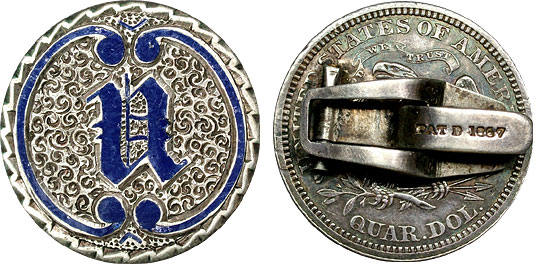 1867 25c US Pair of Seated Quarter Love Token Cufflinks Enameled – U