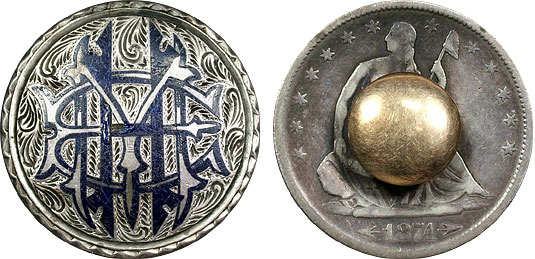 1874 50c US Pair of Seated Half Love Token Cufflinks Enameled – HYE