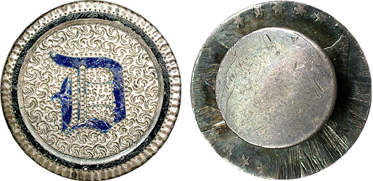 This lovely pair of nicely enameled and intricately engraved love tokens feature deep blue enameling set atop an ornate field and bordered by a deep black enameling.