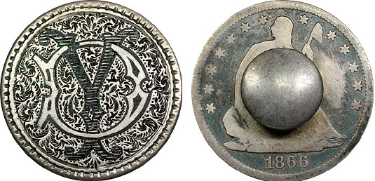 1866/1871 50c US Seated Half Love Token Cufflink Pair Enameled – DY