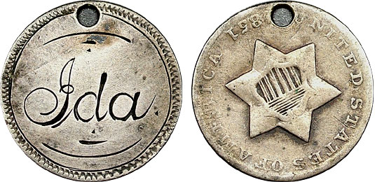 US 3cs Silver Trime Love Token Engraved – Ida