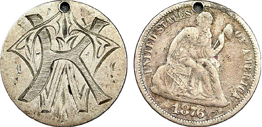 1876 10c US Seated Dime Love Token Engraved – KW