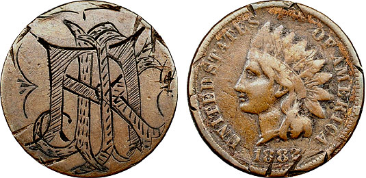1882 1c US Indian Cent Love Token Engraved – JAK