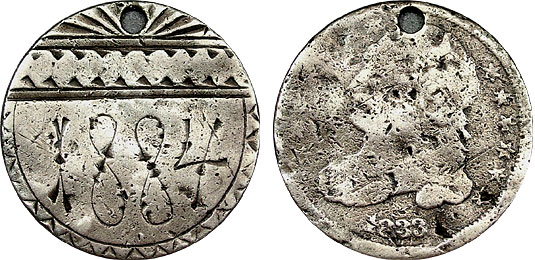 1833 10c US Bust Dime Love Token Engraved – 1884
