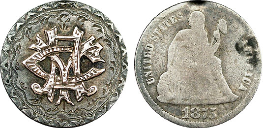 1875 10c US Seated Dime Love Token Gold Overly – AYC