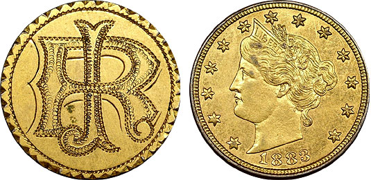 1883 5c US Racketeer Nickel Gold Plated Engraved – JR