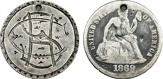 1869 10c US Seated Dime Love Token Engraved – SHC