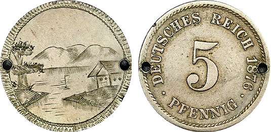 1876 5Pfennig Dutch? Love Token Pictorial – Loch Ness Monster