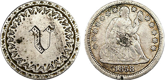 1858 10c US Seated Dime Love Token Engraved - V