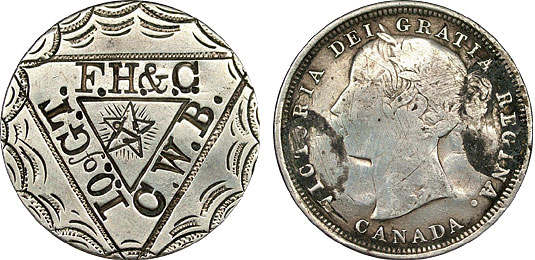 Canada Silver Dime Love Token I.O.of G.T. F.H.&.C. C.W.B with Star and Anchor