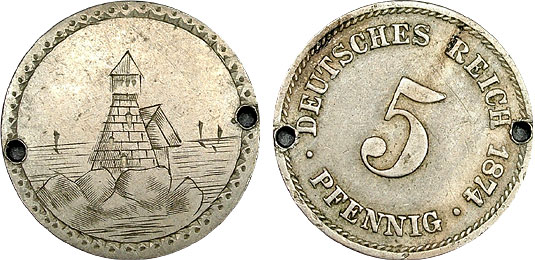 1874 Duch 5Pf Love Token Lighthouse Pictorial