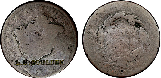 1820 1c US Matron Large Cent Counterstamped – L.H. COULDEN