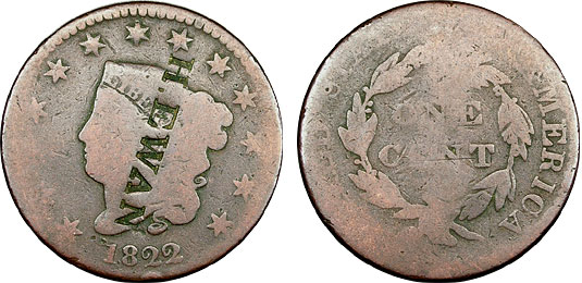 1822 1c US Matron Large Cent Counterstamped – HEWAN