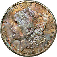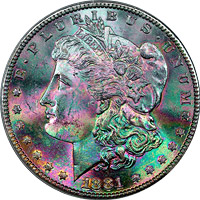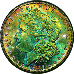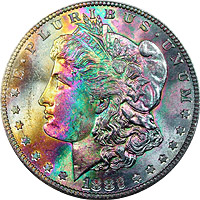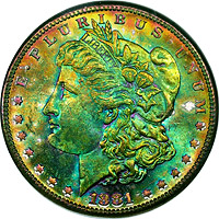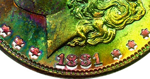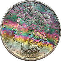 rainbow Morgan dollars.