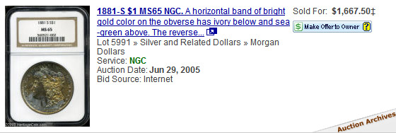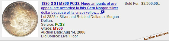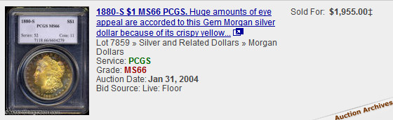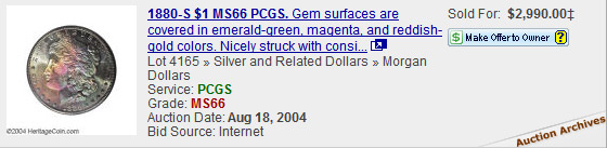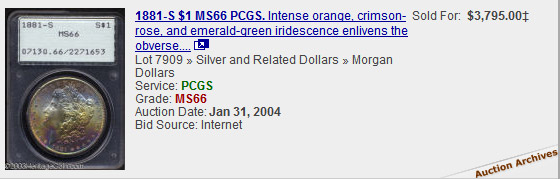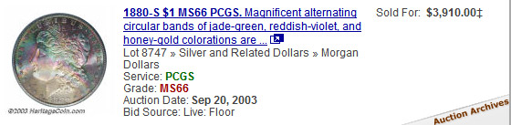 toned Morgans, view auction results of rainbow Morgans, and