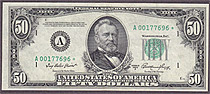 This is a very nice 1950A $50 FRN Star from the ever tough Philadelphia District. The serial number is C00315869*. There are no rips, tears or pinholes. Check out the large scans....