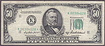 This is from the rare 1950E series. It is a 1950E $50 FRN from New York. There were only 3 districts that printed the 1950E series. They were New York, Chicago and San Francisco. All are rare, especially in SUPERB GEM Condition.