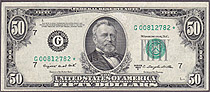 Here is an EF/AU 1950C $50 Chicago Star. The serial number is G00812782*. No rips, tears, pinholes or bank marks. A stunning example of this tough series in a star. ...