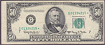 Here is an VF1950B $50 New York Star. The serial number is B01387855*. No rips, tears, pinholes or bank marks....