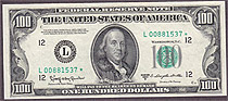 Here is a nice 1950A $100 New York star note. The serial number is B00358255*. There are no rips, tears, pinholes or bank marks. It is totaly original with no cleaning or pressing....