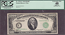 7/3/2012---- THIS NOTE IS IN A PCGS-40 HOLDER net. This is a brand new 1934 Philadelphia $5,000 FRN that just came out of a clients safety deposit box after being locked up for over 41 years. It is brand new to the census with its super low two-digit seri...