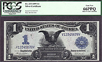 This is a very nice Fr.-235 1899 $1 Silver Certificate Black Eagle with a nice serial number of H600A. It is in a PCGS-65GEM holder. This is a nice note for you fancy serial number collectors....