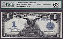 This is a super 2-digit 1899 $1 Black Eagle Silver Certificate. The serial number is H15A and it is in a PCGS-58EPQ holder. This GEM Fr.-235 is 100% original with no other problems and it features a s...