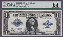A reasonably high grade 1923 $1 Silver Certificate is displayed here. The serial number is *19923859D and it is graded as a PMG-58EPQ. A perfect type note for the collector who also want a star at a r...