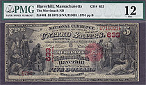 Fr.-401 1875 $5 NBN Haverhill, Mass. Chtr # 633 PMG F-12