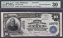 You dont see many Large Size Errors, especially on large size National Bank Notes. The serial # is 5970 and the charter # is 10573. I now offer you this one from my private collection. Not only is this from the hard to find Vian,Oklahoma state, it ...
