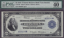 This $2 Battleship is the finest of the 10 known 1918 $2 FRBN Boston star notes by far. It has been graded as a PMG-EF-40EPQ. The serial number is A68494*. Ive had this rare Boston star note for some time in the Jhon E Cash Collection....