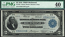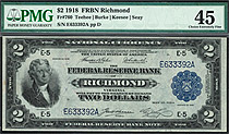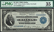 POP2/1 Finer...This is one of my favorite 1918 $2 Battleship FRBNs. Not only because it is from my home city but because of its true rarity in GEM. There are on 7 of these Dallas FRBN's known in GEM grade. Of the 29 graded by PMG, only one is graded highe...