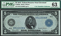 Fr.-859a 1914 $5 Cleveland (Blue Seal) FRN Ser. D31121696A PMG-63