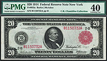 Fr.-953a 1914 $20 New York (RED SEAL) FRN Ser. B1150732A PMG-40