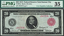 Fr.-961a 1914 $20 Kansas City (RED SEAL) FRN Ser. J94737A PMG-35