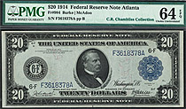 Fr.-984 1914 $20 Atlanta FRN (Blue Seal) Ser. F3618378A PMG-64EPQ