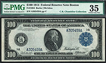 Fr.-1084A 1914 $100 Boston (Blue Seal) FRN Ser. A305459A PMG-35