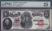 The fifth issue was limited to the $10 denomination series of 1901. (The Bison Note). These notes were issued under the authority of the Legal Tender Acts of 1862 and 1863.