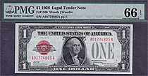 Fr.-1500 1928 $1 Legal Tender PMG-66EPQ Serial # A01774805A