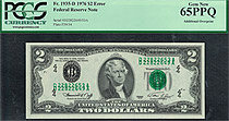 Fr.-1935A 1976 $2 (Error- Two sets of Serial Numbers) D22822649/53A PCGS-65PPQ